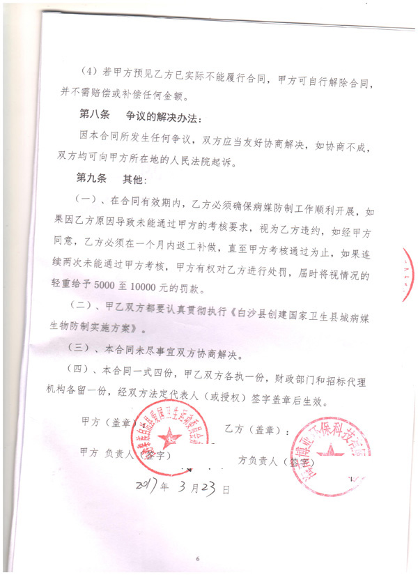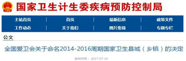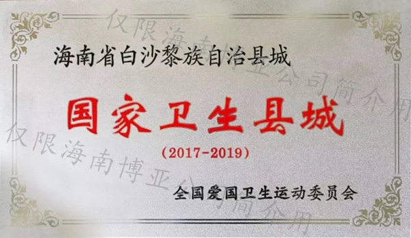 ③、白沙縣:2016年至2017年期間(2015年也是我公司負(fù)責(zé)病媒防制工作)參與白沙縣創(chuàng)建國(guó)家衛(wèi)生縣城,于2017年通過(guò)國(guó)家衛(wèi)生縣城國(guó)家病媒專(zhuān)家技術(shù)評(píng)估組的達(dá)標(biāo)考核驗(yàn)收,并于當(dāng)年獲得“國(guó)家衛(wèi)生縣城”榮譽(yù)稱(chēng)號(hào)。