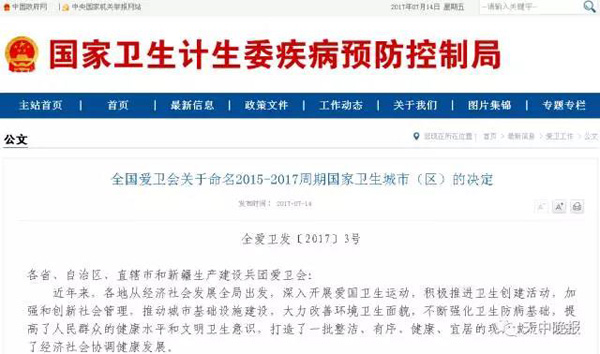 獲得“國(guó)家衛(wèi)生城市”榮譽(yù)稱(chēng)號(hào)