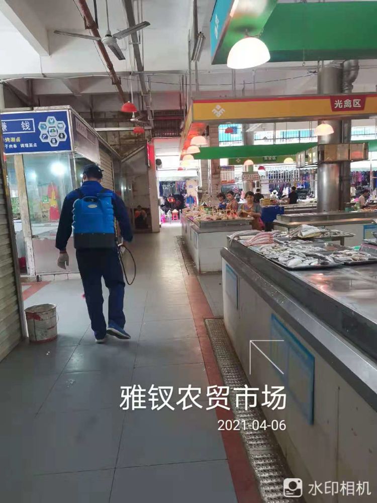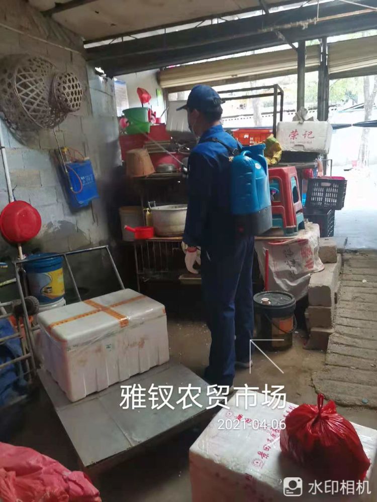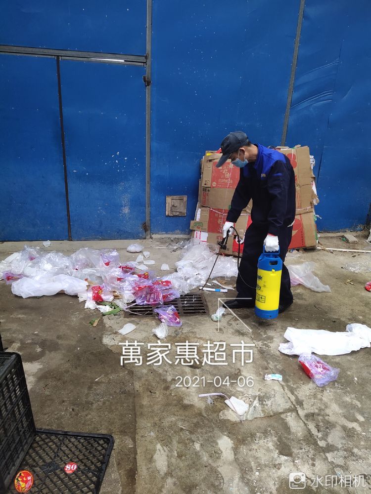 在“三月三”活動期間,根據(jù)白沙縣愛衛(wèi)服務(wù)中心為改善白沙縣環(huán)境衛(wèi)生狀況,提高居民生活環(huán)境質(zhì)量,保障居民群眾的身體健康的要求。按照既定計劃及消殺方案,2021年4月6日,海南博亞環(huán)??萍加邢薰緦I(yè)防制隊伍對白沙縣城建成區(qū)開展病媒生物防制工作(即滅老鼠、滅蚊蟲、滅蒼蠅、滅蟑螂)活動。具體施工情況為:1、防制場所:白沙原生態(tài)茶園小鎮(zhèn)、茶園二隊、高峰新村;城西片區(qū)有滿江紅大排檔、和興美食店、胖哥美食店、光哥美食店、沙縣小吃、蒲蒲清補涼、豐盛食店、康發(fā)飯店、每日鮮水果店、南叉河兩岸河堤、英華快餐店;城東片區(qū)有雅釵農(nóng)貿(mào)市場、鳳凰城市場、萬家惠超市、七里串串香、華萊士。2、投入員:本次共投入專業(yè)防制人員10名。3、施工面積:消殺面積約100000平方米。4、用藥情況:15%高氯·殘殺威25L、2%殺蟑熱霧劑15L、0.005%溴敵隆10公斤、0.005%溴鼠靈40公斤、1%殘殺威毒餌50袋、0.5%氟蟲腈滅蟑膠餌8支、0.5%吡丙醚5公斤。5、施工次數(shù):市場2次數(shù)、超市1次數(shù)、餐飲店11次數(shù)、商店1次數(shù)、垃圾收集點12次數(shù)、村莊3次數(shù)、南叉河兩岸1次數(shù)、水體10次數(shù),共計40次數(shù)。其中重點場所13處。