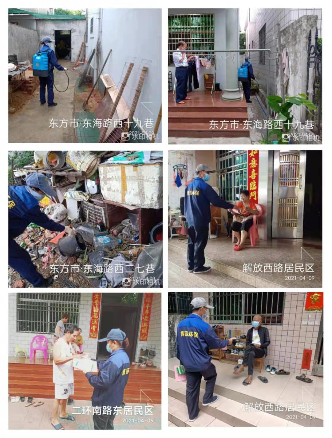 專業(yè)防制員深入社區(qū)居民戶消殺并宣傳愛國衛(wèi)生工作重要意義,發(fā)放倡議書、宣傳冊。